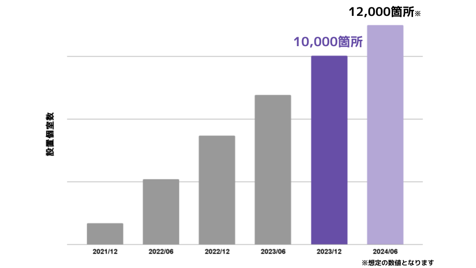 サービスの提供を開始して以来、オフィスや商業施設などに導入が進んでおり、2023年11月末には10,000箇所超へ設置を拡大し、月間リーチ人数も約690万人程度となる見込みです。また設置面は2024年中旬には12,000箇所程度まで拡大する予定です。