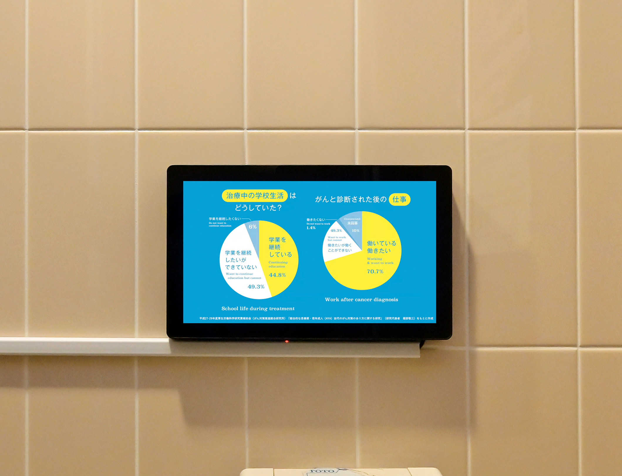 トイレ空間をアップデートするために、他の企業や大学などと連携し、個室内のサイネージに情報配信する取り組みも増えています。下記では取り組みの一部をご紹介します。