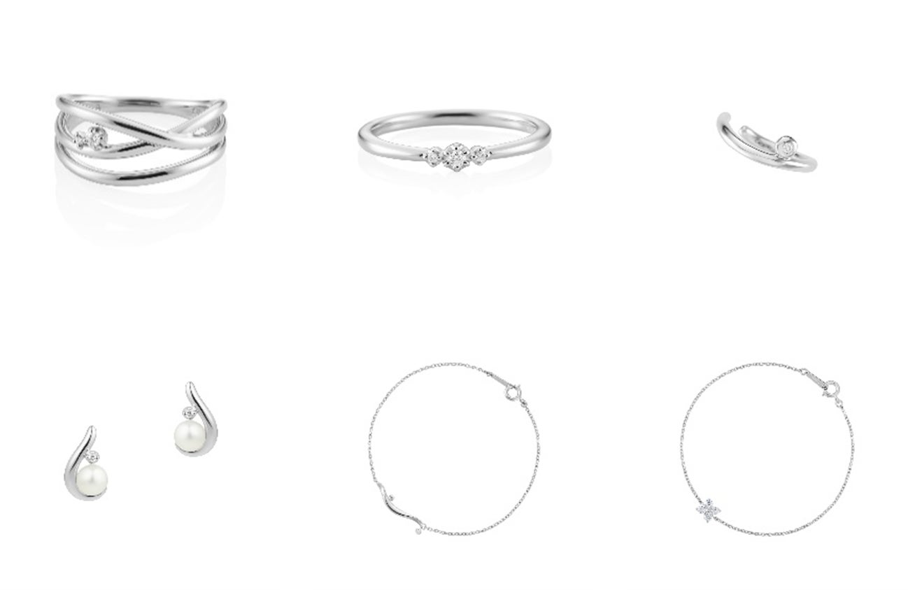 ネックレスは全7種類。ダイヤモンドの輝きを主役に据えたシンプルなデザインから、程よくボリューム感のあるモチーフが目を惹くデザインまで、お好みに合わせて選ぶことが可能。リングやピアス、ブレスレットには、大きさにもこだわった質の高いダイヤモンドを添え、シーンを問わず着用できるアイテムが揃います。