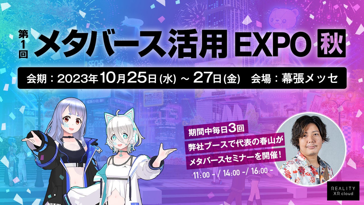 ブースでは、弊社代表の春山が、各日3回メタバースセミナーを実施予定です。企業のメタバース活用を考える Metaverse Seminarと題して、メタバースの未来と活用方法、当社の事例についてお話しする予定です。ご興味のある方はぜひブースにお越しください。