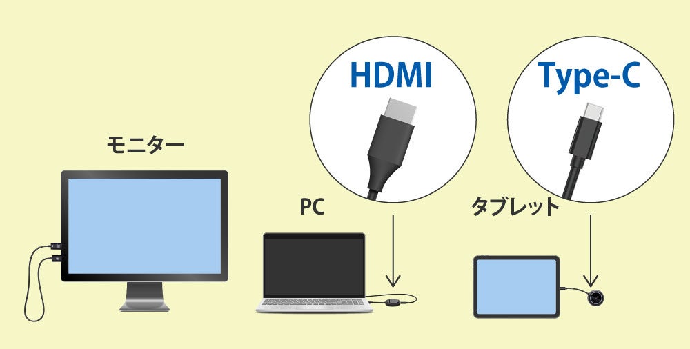 ※Mac、iPhone、Android、タブレットなどHDMI出力端子がない機器の場合、機器に適合したHDMI変換アダプターが別途必要です。(機器側がDP Altモードに対応している必要もあります)