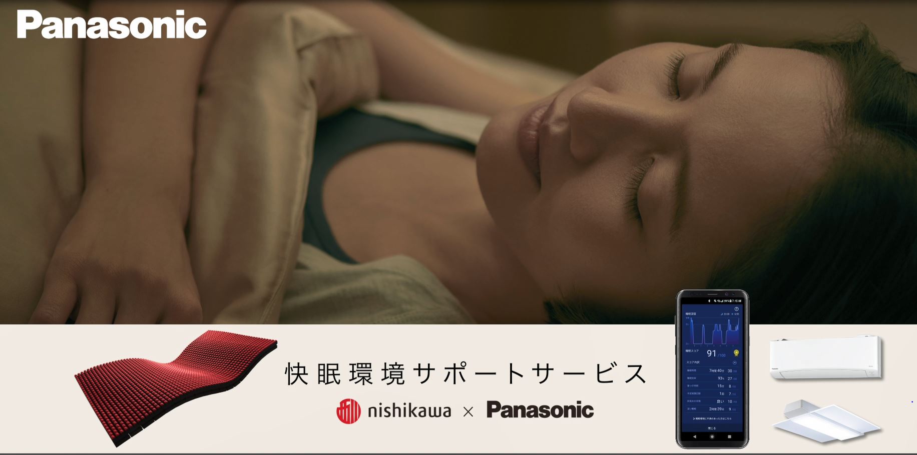 西川株式会社(以下、西川)とパナソニック株式会社(以下、パナソニック)は、西川のマットレスとパナソニックの家電(※1)を連携させ、睡眠の結果を可視化、一人ひとりにあったアドバイスで、よりよい睡眠環境を提供する「快眠環境サポートサービス」を共同開発し、2020年3月18日より、パナソニックがサービスの提供を開始します。