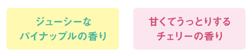 ハンドクリームには保湿成分のパイナップ果実エキス(パイナップルの香り)、セイヨウミザクラ果実エキス(スウィートチェリーの香り)も配合。