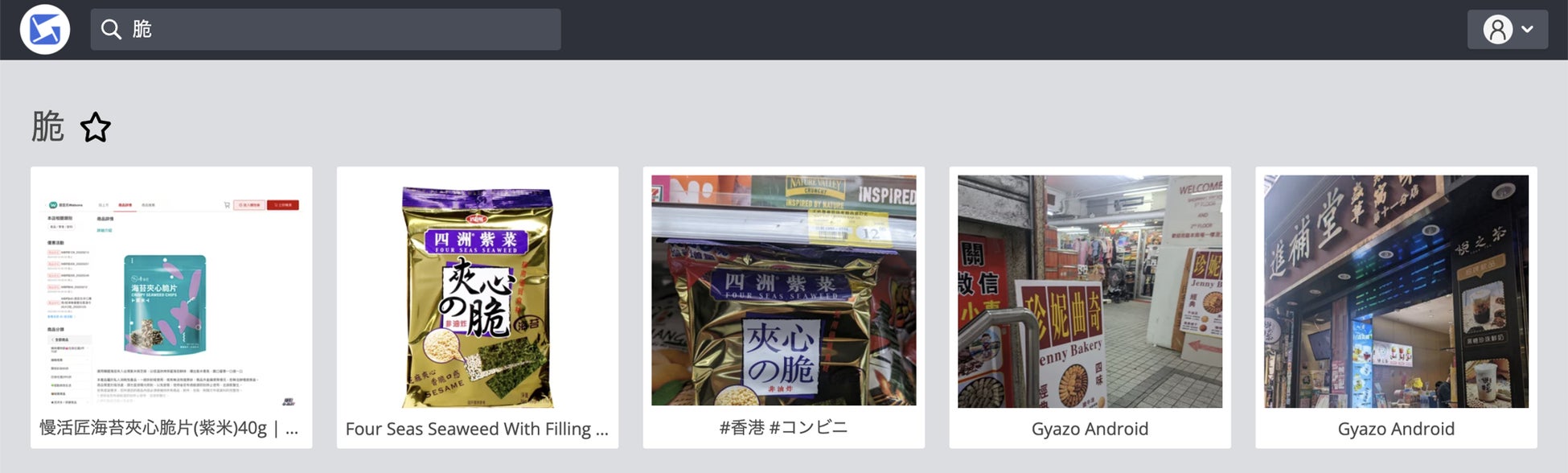 タグ、ページタイトル、リンク、キーワードで検索し、OCRスキャンで画像内のテキストも検索できます。膨大なデータから欲しいものを素早く探し出すことができます。