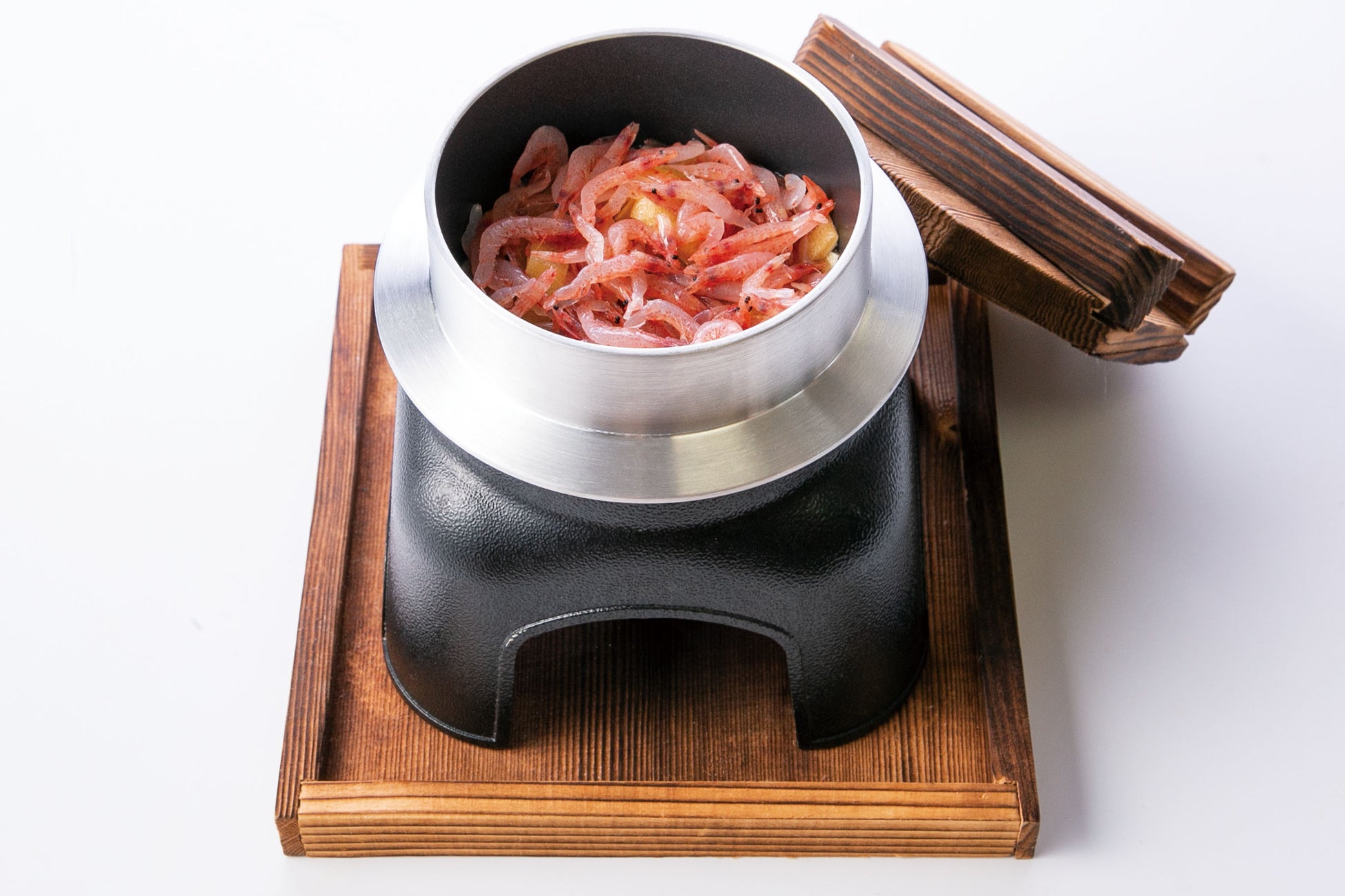 駿河湾産生桜えびを使用。生桜えびのうま味と食感を最大限に活かした贅沢な釜めしです。