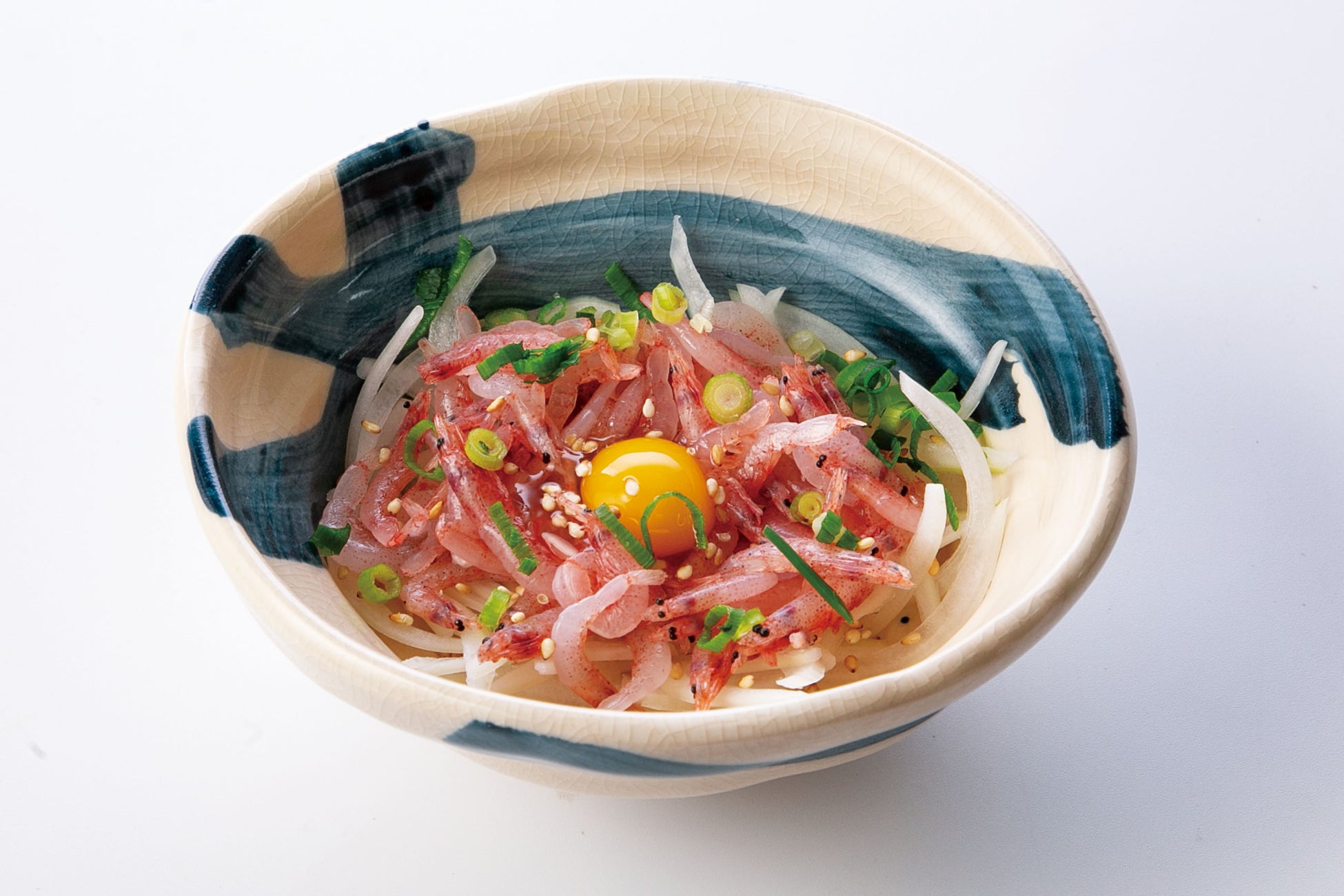 駿河湾産生桜えびを使用。韓国の定番料理ユッケを桜えびでアレンジいたしました。