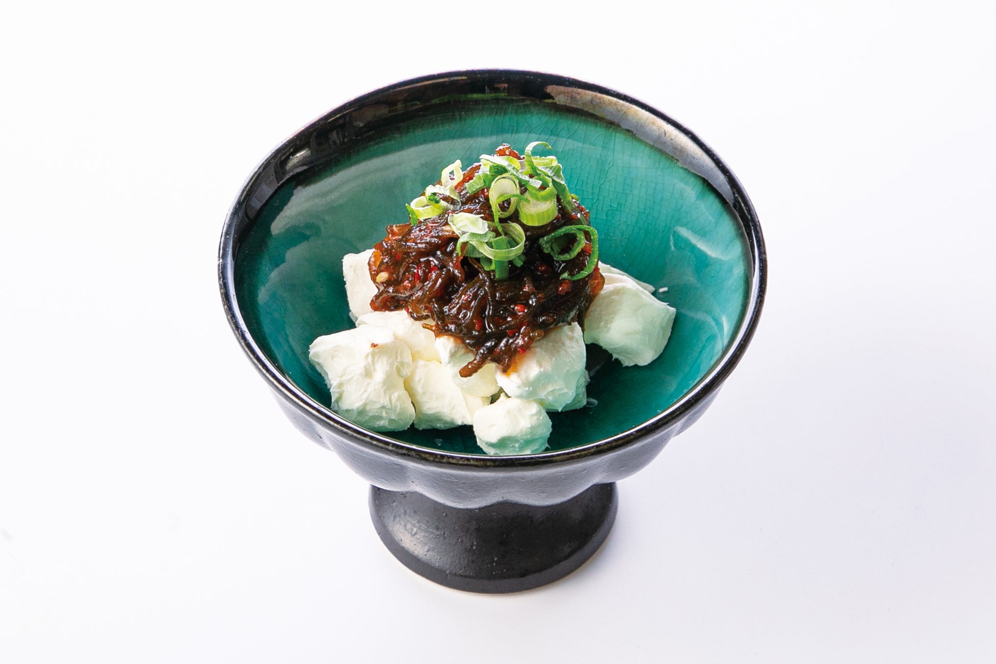 「沖縄勝連産もずく」を使用。もずく×キムチ×チーズの新しい美味しさ!濃厚チーズとキムチの旨み、もずくのとろみが絶妙です。