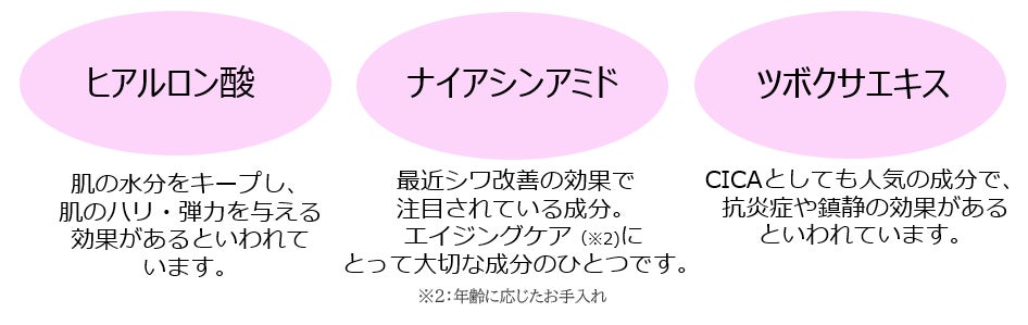◆貼るだけで美容液成分(ヒアルロン酸、ナイアシンアミド10%、ツボクサエキス)を肌深部(※1)に直接注入し、肌にうるおいとハリを与え、乾燥による小じわを目立たなくします。