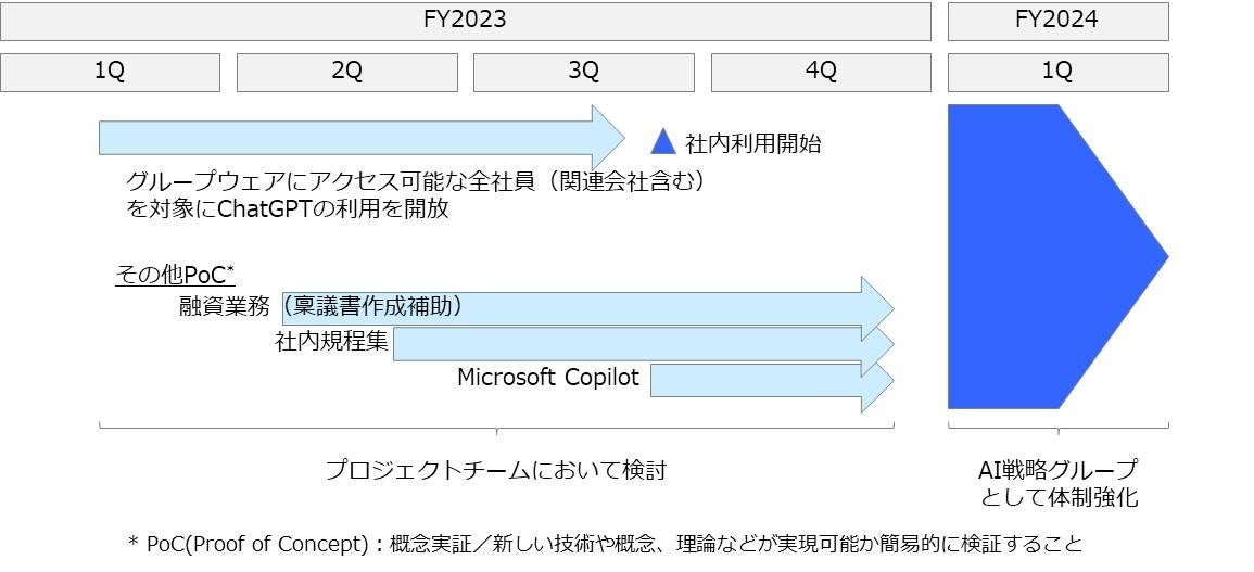 既存業務の効率化や営業高度化のみならず、将来的にはAIを起点としたビジネスプロセスの再構築を目標とし、先端テクノロジーに関する知見を有するベンチャー企業等、外部パートナーとの協業も検討してまいります。