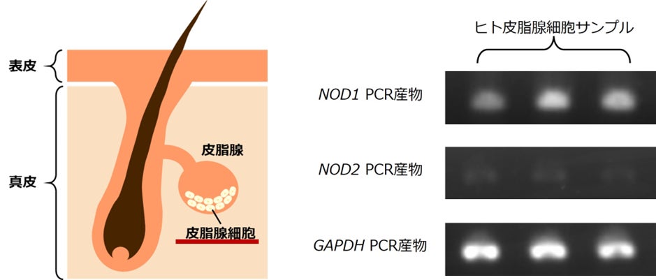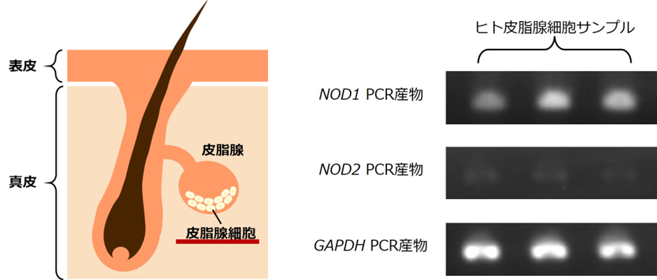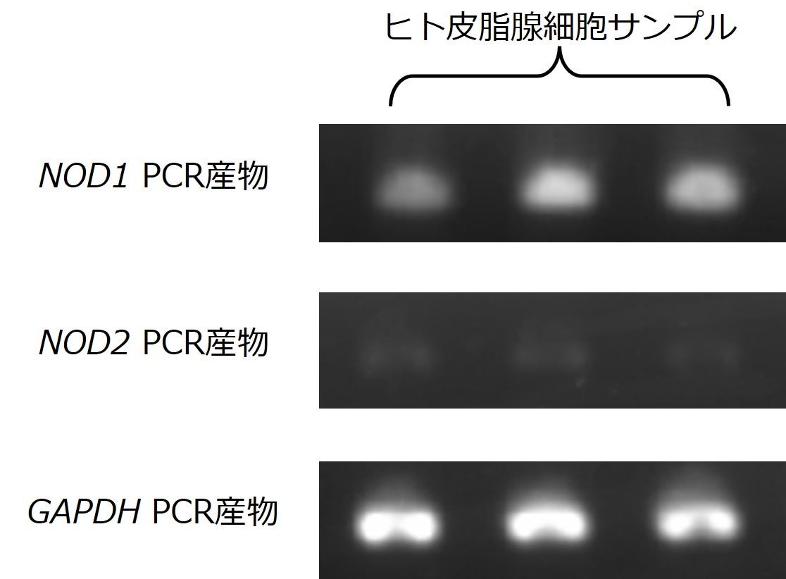 このことから、ヒト皮脂腺細胞はNOD1を発現する一方で、NOD2をほとんど発現しないことが明らかとなりました。