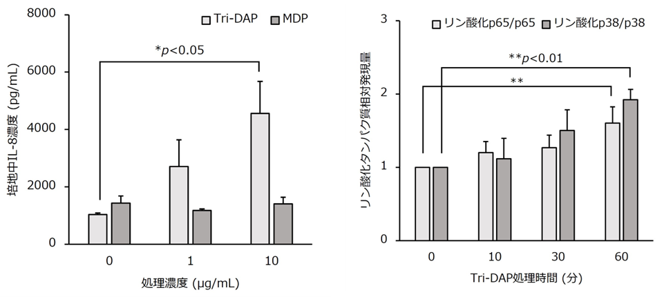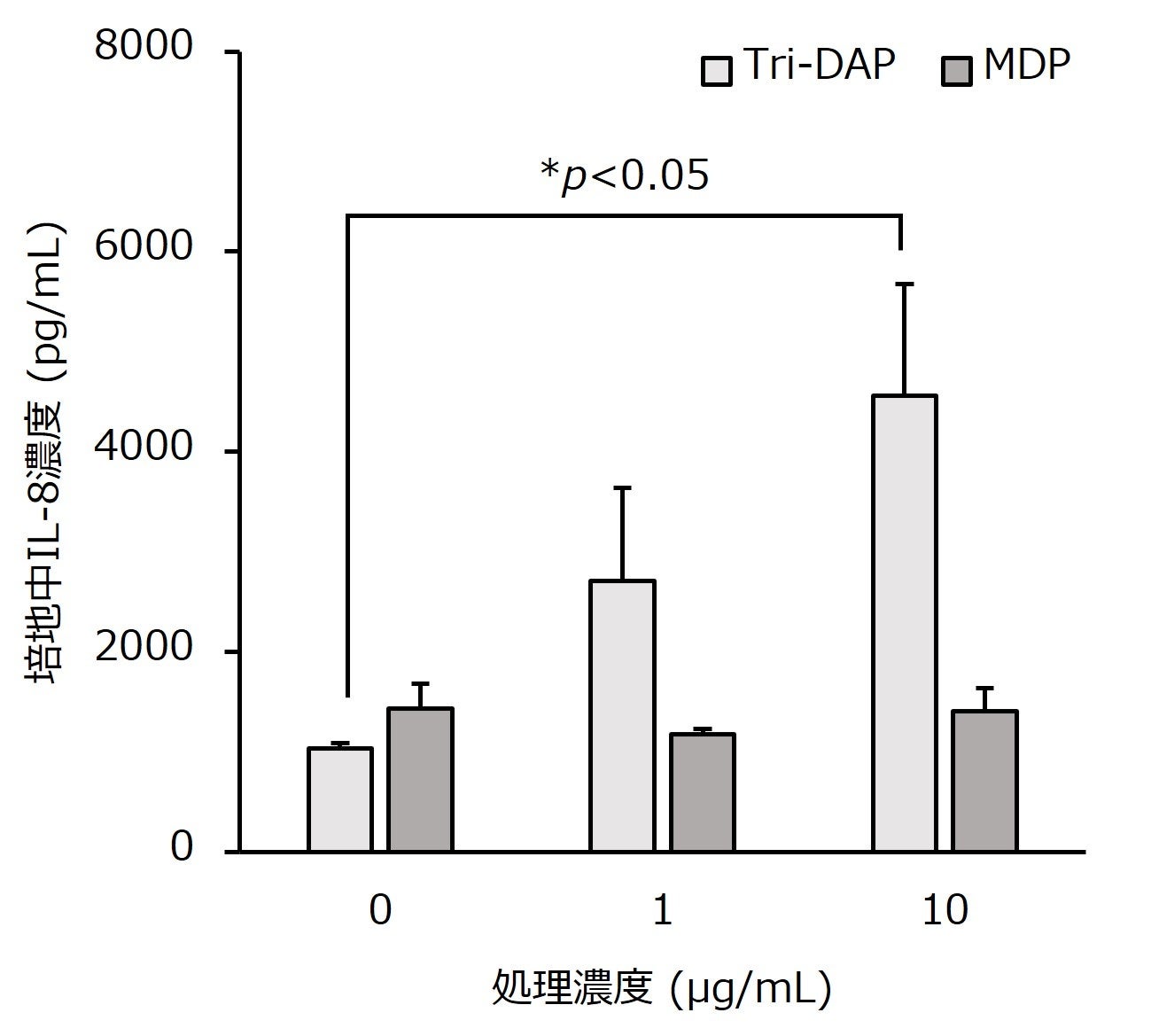 ※2 L-Ala-γ-D-Glu-mDAP (Tri-DAP):主にグラム陰性菌のペプチドグリカンに存在するトリペプチド。NOD1に認識され、下流の免疫応答シグナルを活性化させることが知られている。