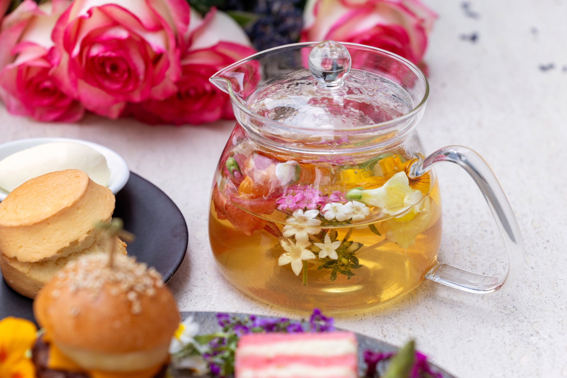 アフタヌーンティーに欠かせないスコーンは、定番のプレーンに加え、ドライラベンダーを練りこんで焼き上げる特別バージョンの2種類をご提供いたします。スイーツとセイボリー、そしてスコーンをカラフルな花を浮かべたフラワーティーとともにお楽しみいただくことにより、目でも舌でも春のフラワーガーデンで過ごすかのようなひとときを満喫できます。