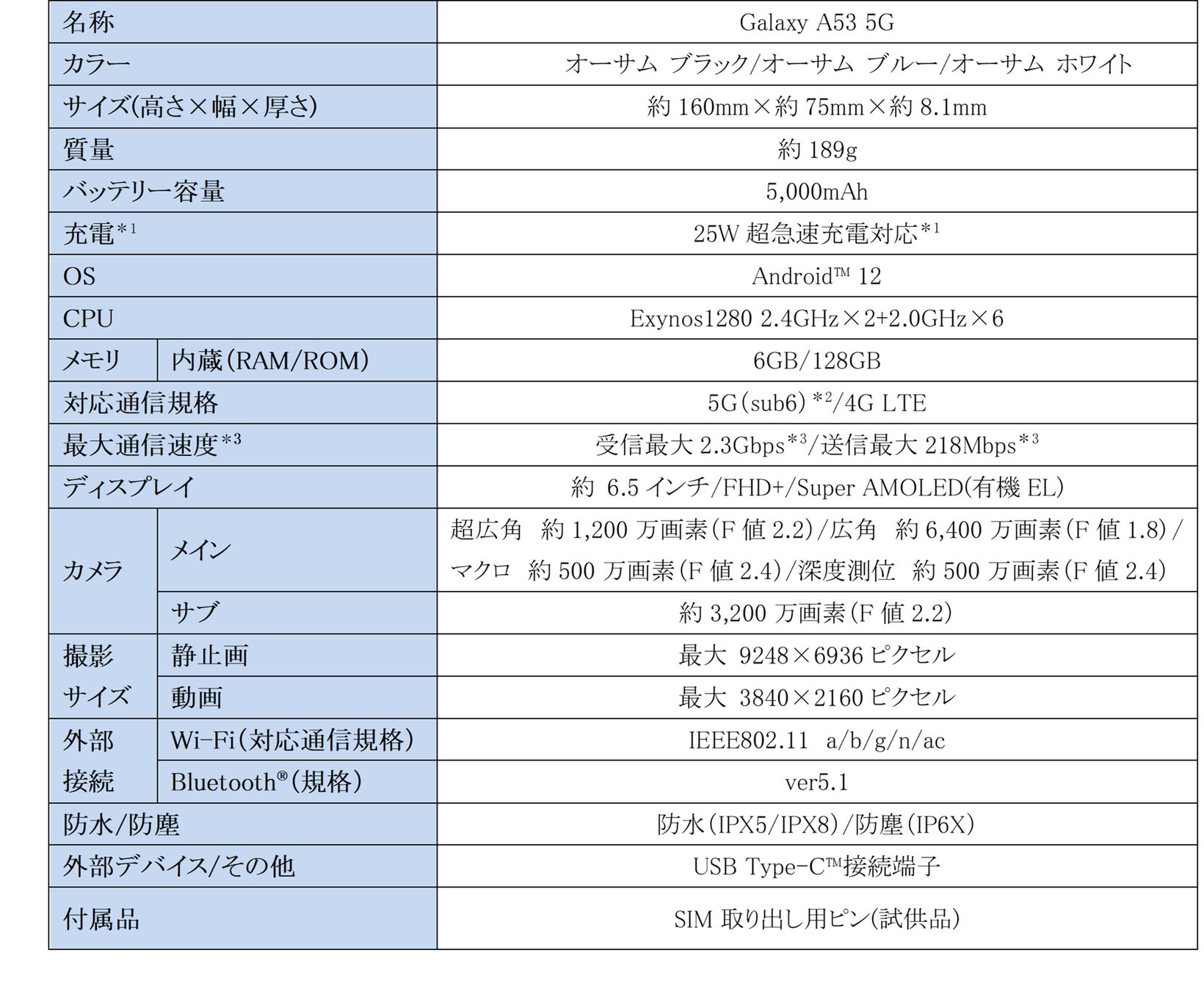 「Galaxy A53 5G」についての詳細ページ