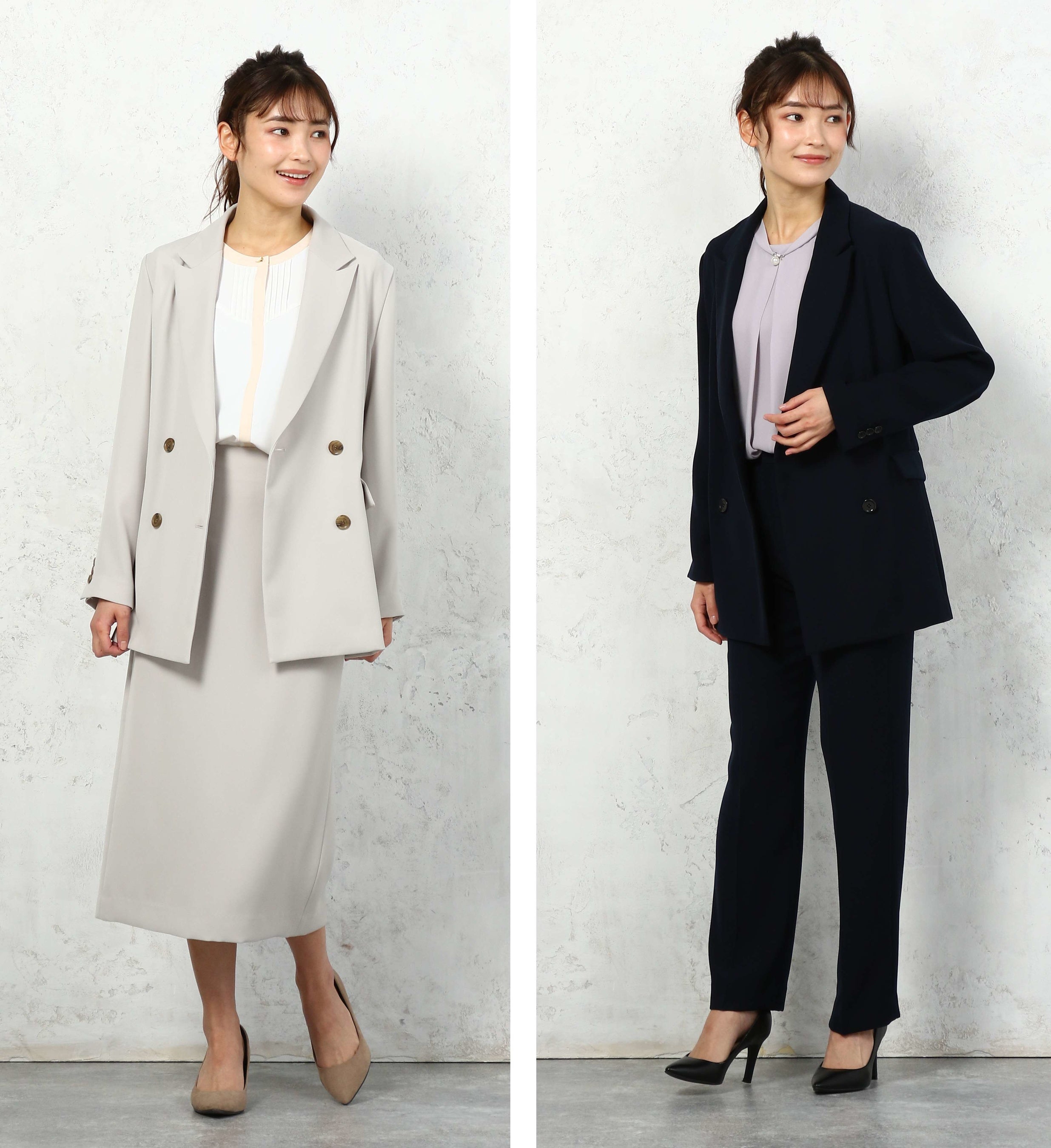 価格:ジャケット 税込み17,600円、スカート 税込み9,900円、パンツ 税込み11,000円