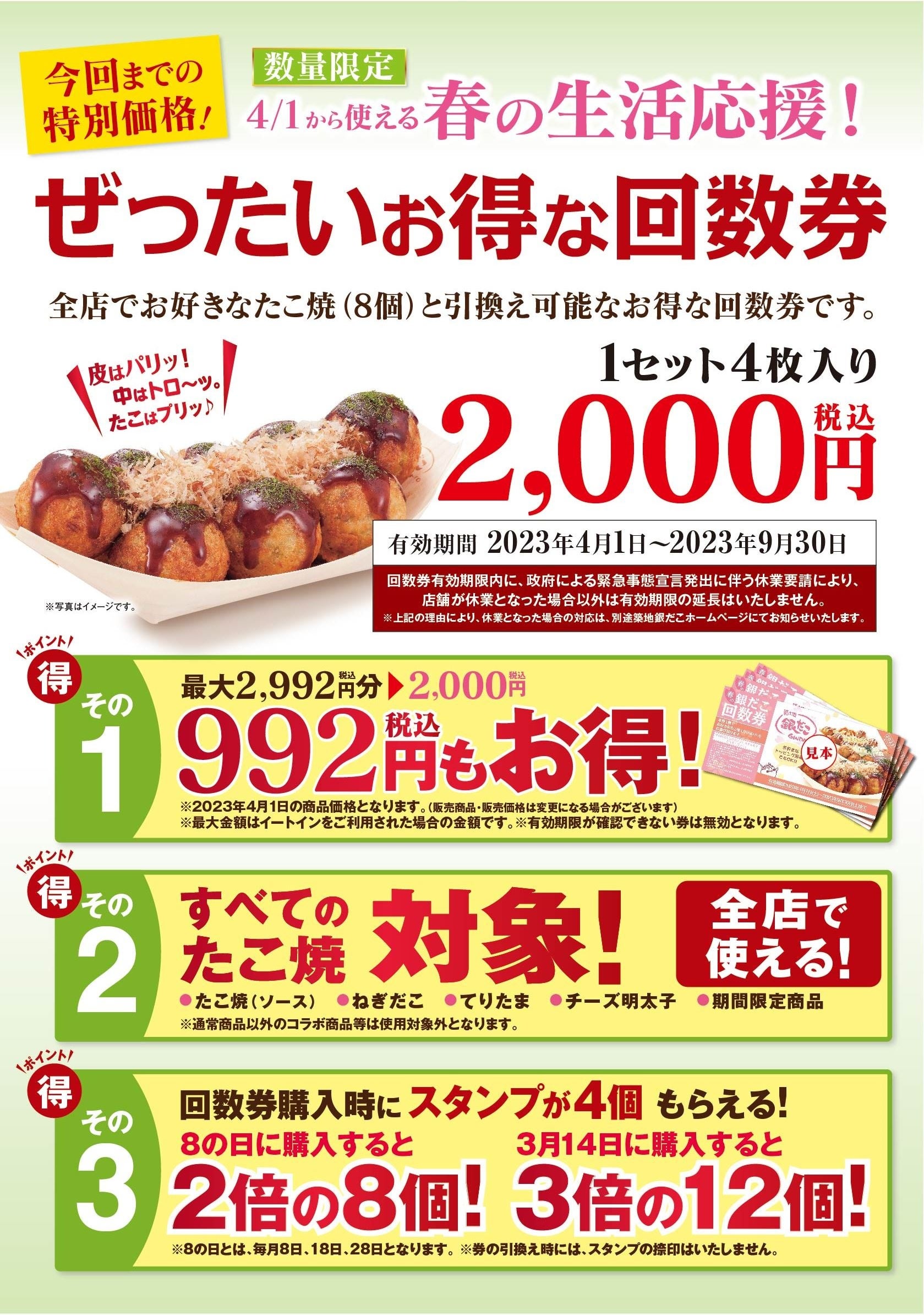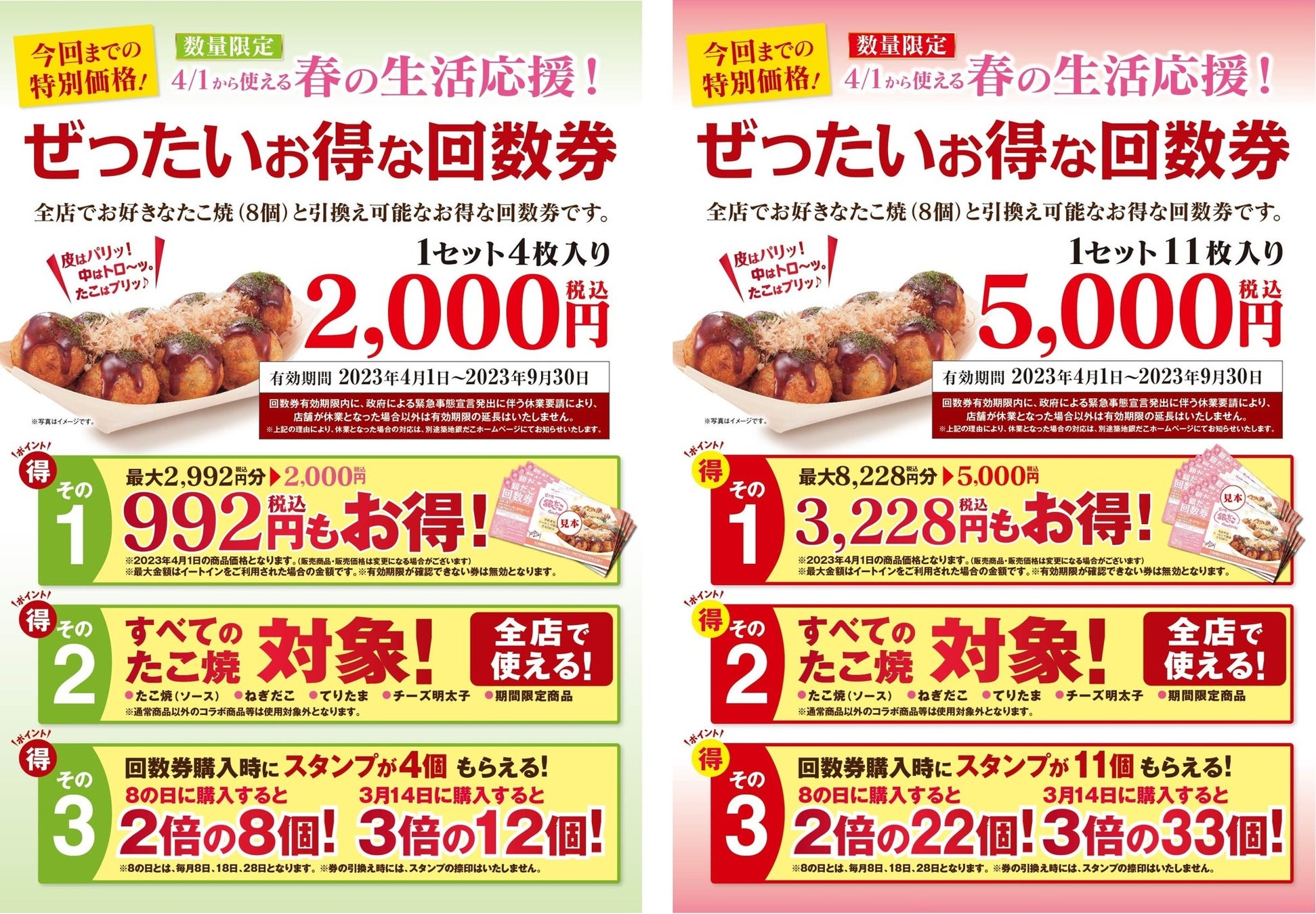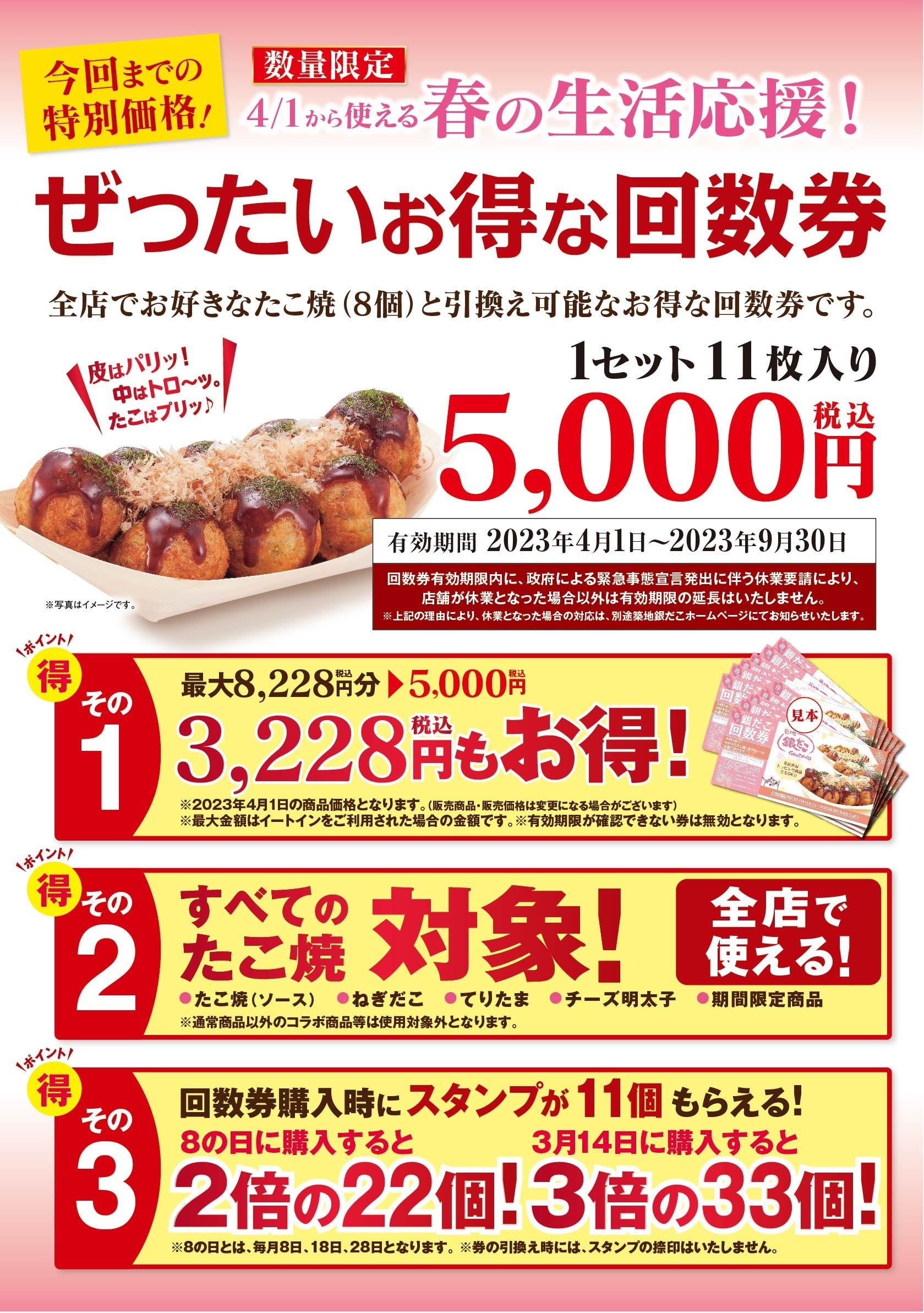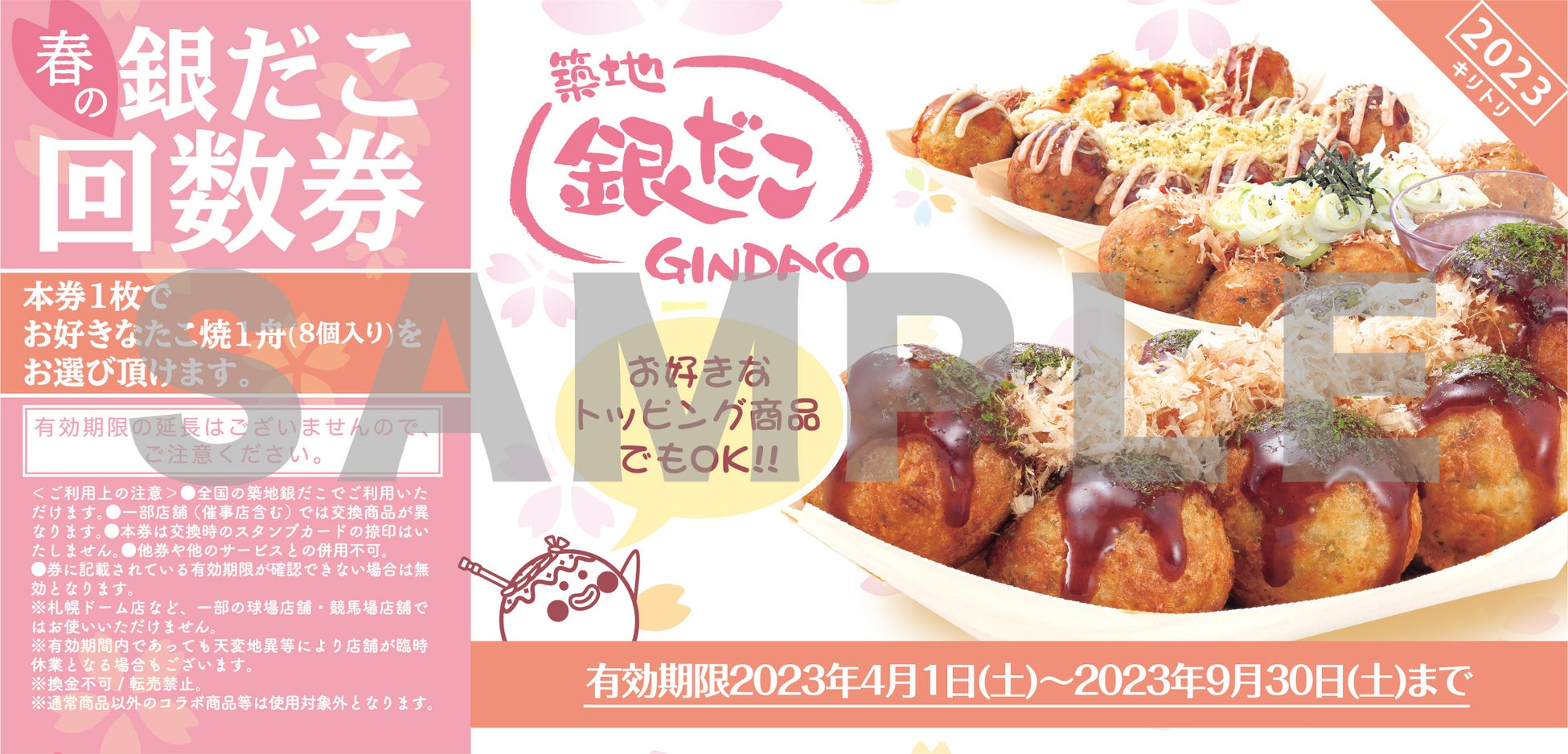 築地銀だこhttps://www.gindaco.com/を展開する株式会社ホットランド(本社:東京都中央区、代表取締役社長:佐瀬守男)は、2023年3月4日(土)より、全国の築地銀だこ店舗(一部店舗を除く)にて、今年も “ぜったいお得な回数券” を数量限定で発売いたします。