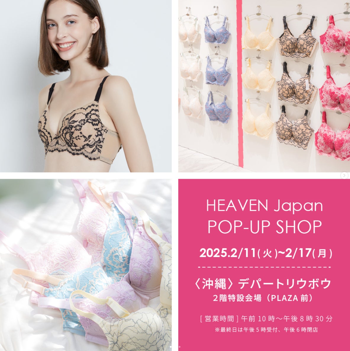 「下着でこんなに変わるんだ」が沖縄でも体験できる!自分にぴったりの下着を見て・試して・購入できる、HEAVEN Japanポップアップショップを沖縄のデパートリウボウにて2/11~2/17まで開催。