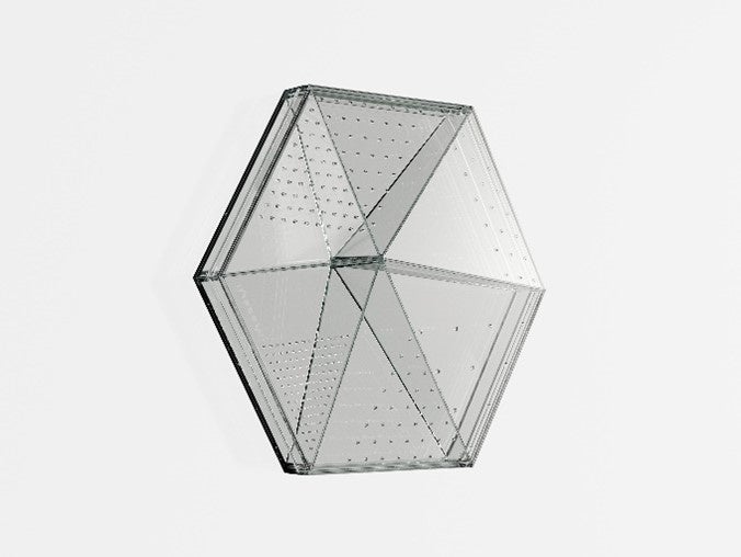 透過性を保ちながら、ガラス面の吸音性を高めるところに新しい可能性を感じた。オフィス空間などで既存のガラス面への取り付け可能な製品として、視線の変化をもたらすフィルムのような役割をしつつ、吸音効果があることの製品価値は高い。今後、より一層ガラスのよさを活かす形状やサイズのバリエーションなど、さらなる展開も期待できる。