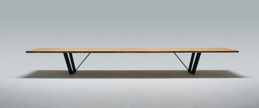 6mのビックテーブルは美しい木の表情で圧倒的な存在感を放っている。多くの人が好む木の大テーブルをオフィス仕様として工業製品化した技術力の高さとその存在感が高評価となった。ロングスパンを飛ばしたブリッジ状の足のフォルムがより木の天板の迫力を強調している。この大テーブルは空間における場のシンボルとなり、人が集う象徴的なテーブルとしての役割も大きい。