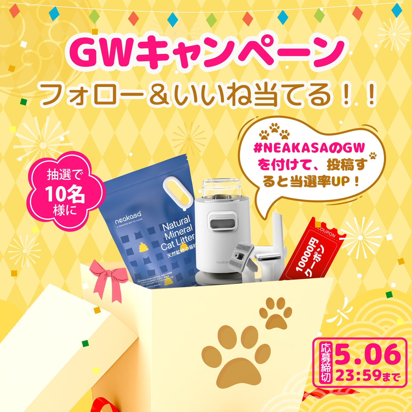 Neakasa公式Instagram・X(旧Twitter)では、P0グルーミング掃除機などが当たるGW限定プレゼントキャンペーンも実施中です。