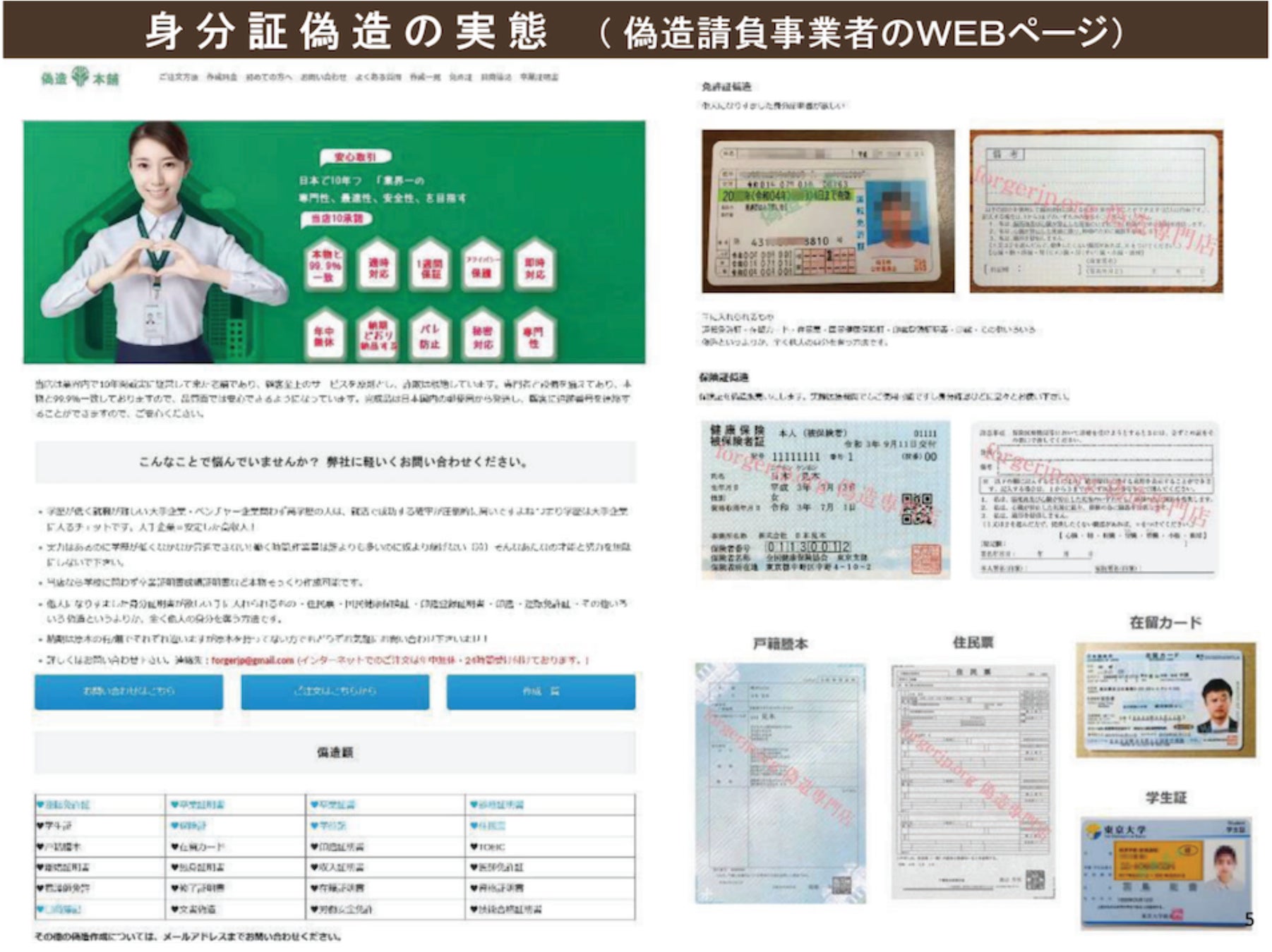 身分証の偽造にはさまざまなパターンがありますが、内容そのものが捏造された上で偽造されるものもあれば、正しい内容を以って偽造されるケースもあります。例えば何らかの方法で身分証のデータとその顔写真が流出した場合、それらのデータを使って精巧に「本物と瓜二つの身分証」を作るケースも出てきています。
