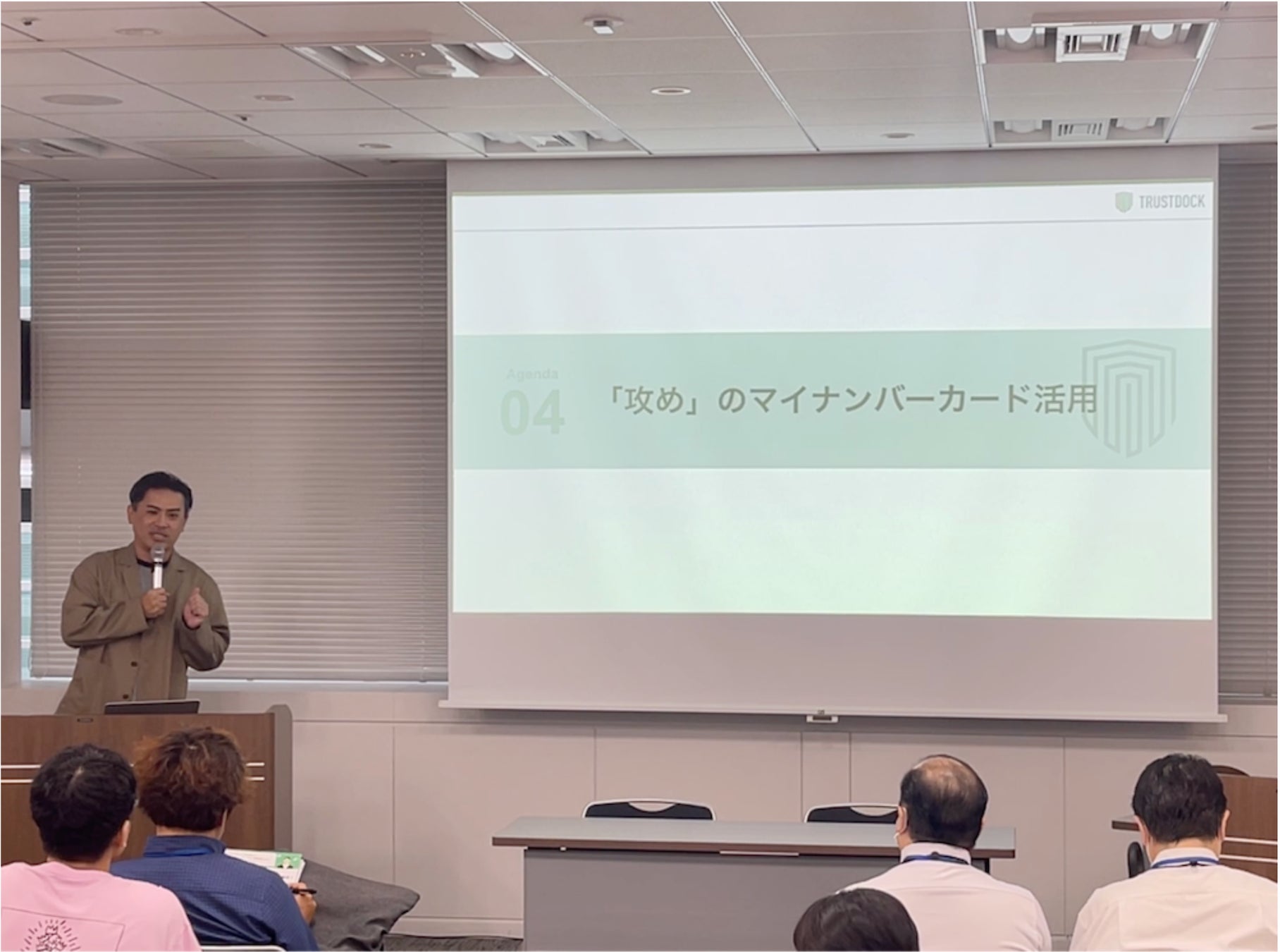 ここまでは、犯罪に巻き込まれないための「守りのマイナンバーカード活用」についてお伝えしましたが、一方で顧客情報管理の観点で「攻めのマイナンバーカード活用」の考え方についても、小野より説明がなされました。