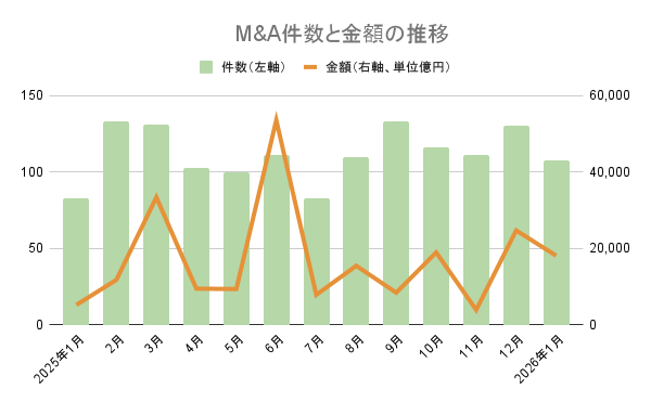 【1月M&A統計】1月として過去最高。107件(24件増)、取引総額1.7兆円超え