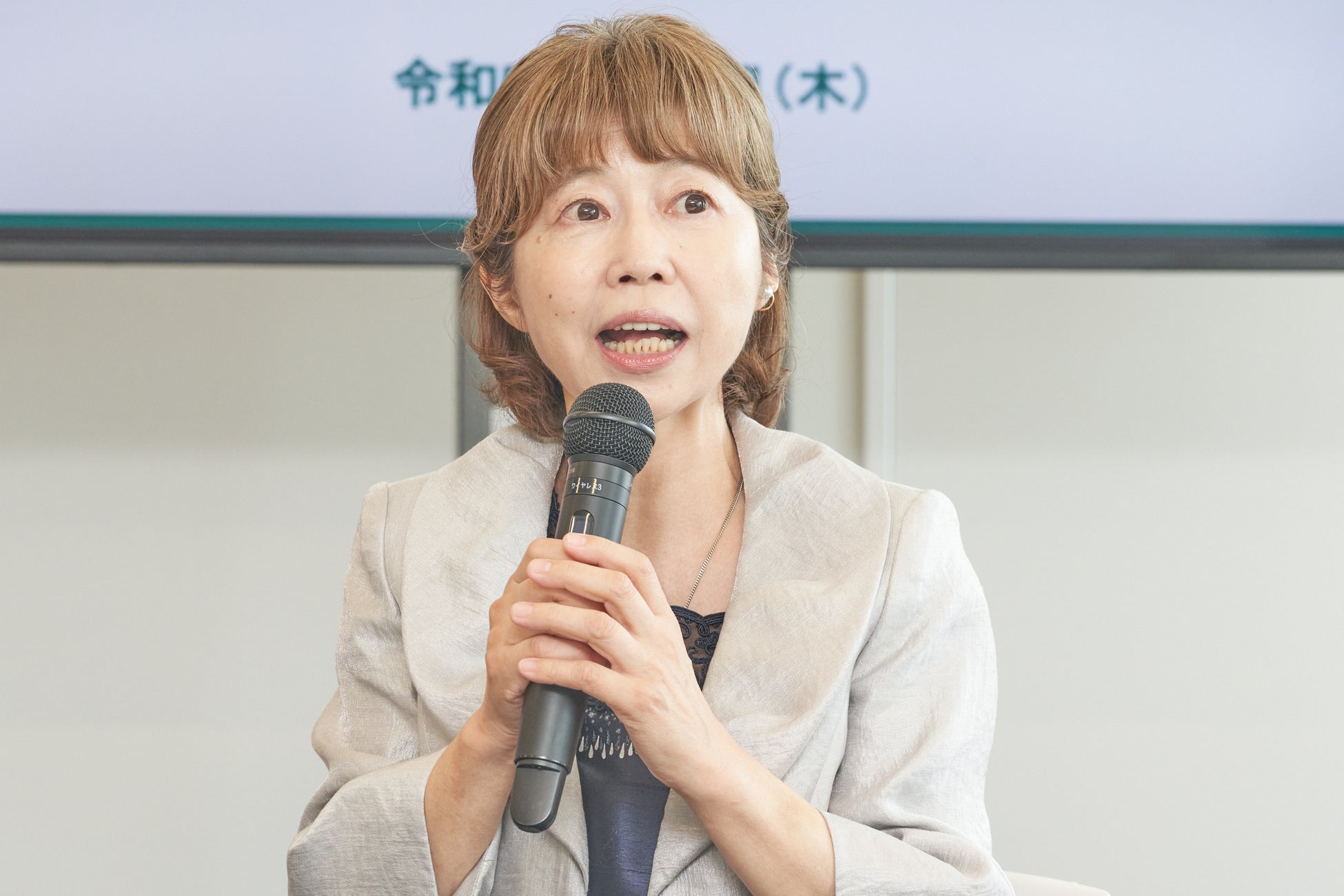 柏原市様、オトバンク様、この度は包括連携協定の締結おめでとうございます。私は、オトバンク様でさくらももこさんの2作品を読ませていただいています。耳でいろんなことを得ると言うのは、体と心の健康にいいというのは私も本当に実感しています。特に笑うと元気になるという話は私もたくさん聞いていますので、ぜひオーディオブックで『もものかんづめ』『さるのこしかけ』を聞いて、クスッとしていただけたら嬉しいです。