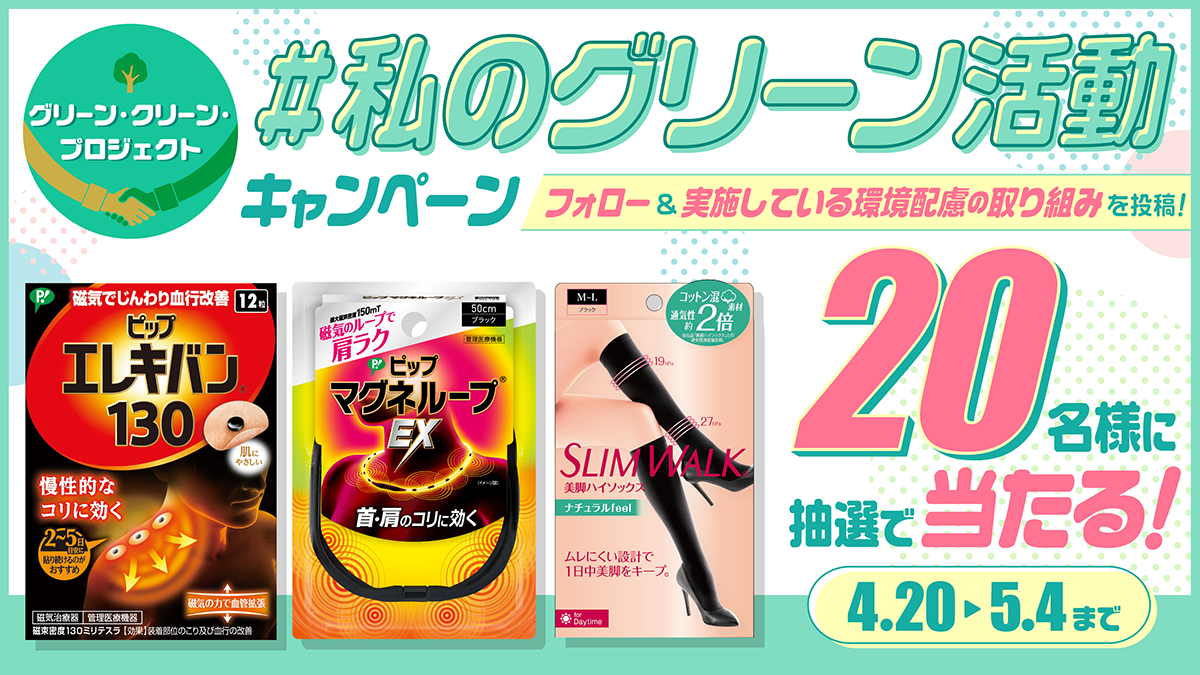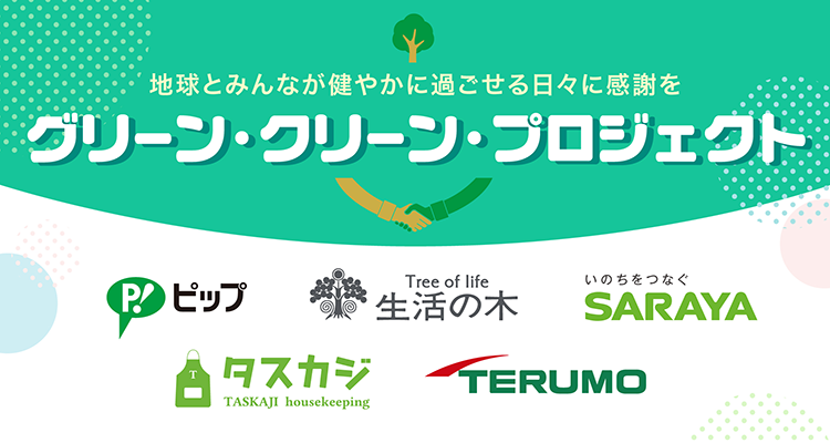 4月20日(木)~5月4日(木)までの期間、ピップ㈱、サラヤ㈱、㈱タスカジの公式SNSにて、プレゼントキャンペーンを随時実施中です。「日ごろ行っている環境に優しい取り組みの募集」や「ご自身がしているエコ家事の募集」など、グリーン・クリーン・プロジェクト期間限定のキャンペーンとなっています。各キャンペーンの詳細は、特設サイトまたは各社公式SNSをご覧ください。