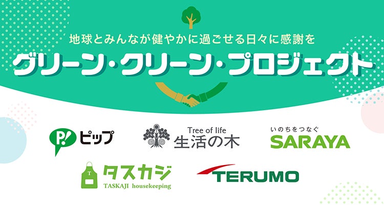 ピップ株式会社(本社:大阪市中央区、代表取締役社長:松浦由治)は、2023年4月20日(木)より“地球とみんなが健やかに過ごせる日々に感謝を”という理念のもと『グリーン・クリーン・プロジェクト2023』を実施します。本プロジェクトは、5月4日(木)「みどりの日」を契機に“緑”というキーワードで繋がった企業が自然への感謝と、環境について考える機会を創出するプロジェクトです。3回目となる本年の参加企業は、「ピップ株式会社」のほか「株式会社生活の木」「サラヤ株式会社」「株式会社タスカジ」「テルモ株式会社」の計5社です。4月20日(木)~5月4日(木)の期間中、一部参加企業のSNSでプレゼントキャンペーンが行われる他、特設ページで各社の環境に優しい取り組みとその解説をご覧いただけます。