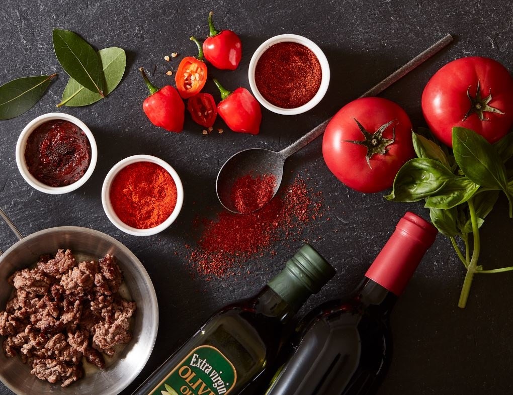 ・さらに、セロリシード、黒胡椒、ナツメグ、バジル、ローリエといったスパイスを配合し、風味豊かな激辛ボロネーゼに仕立てました。