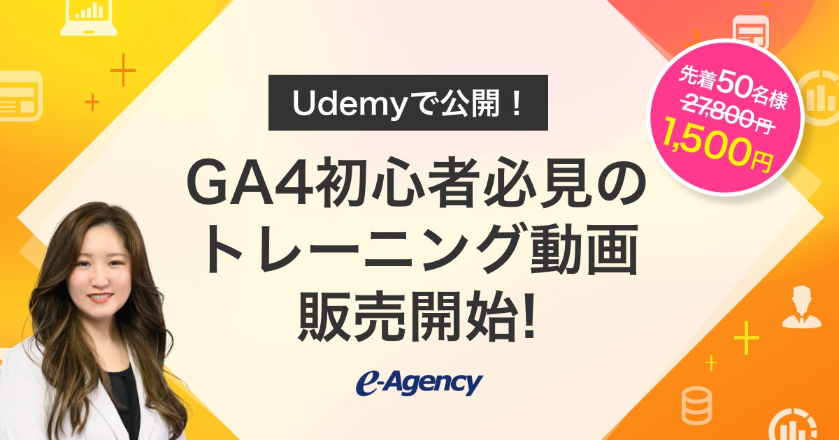 “おもてなしを科学する”株式会社イー・エージェンシー(東京都千代田区、代表取締役:甲斐真樹、以下イー・エージェンシー)は2025年2月5日(水)、Google アナリティクス 4 プロパティ(以下、GA4)導入後の活用方法にお悩みの方や学習に課題を抱えている方をサポートするため、オンライン学習プラットフォーム「Udemy」にて、GA4の基礎をしっかり学べるトレーニング動画の販売を開始しました。