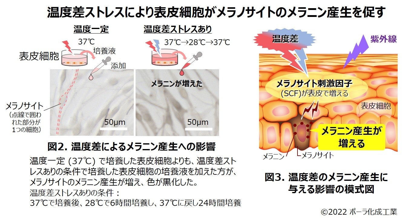 - 温度差ストレスにより表皮細胞でのメラノサイト刺激因子の遺伝子発現が増える