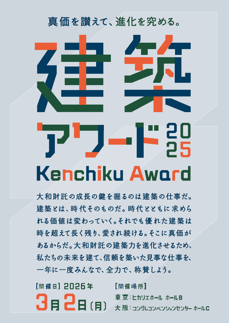 不動産・建築領域等を活用した資産価値共創事業を展開する大和財託株式会社(本社:東京都渋谷区/大阪府大阪市 代表取締役CEO:藤原正明、以下「当社」)は、2026年3月2日(月)に、「第一回 建築アワード」を開催しましたことをお知らせいたします。