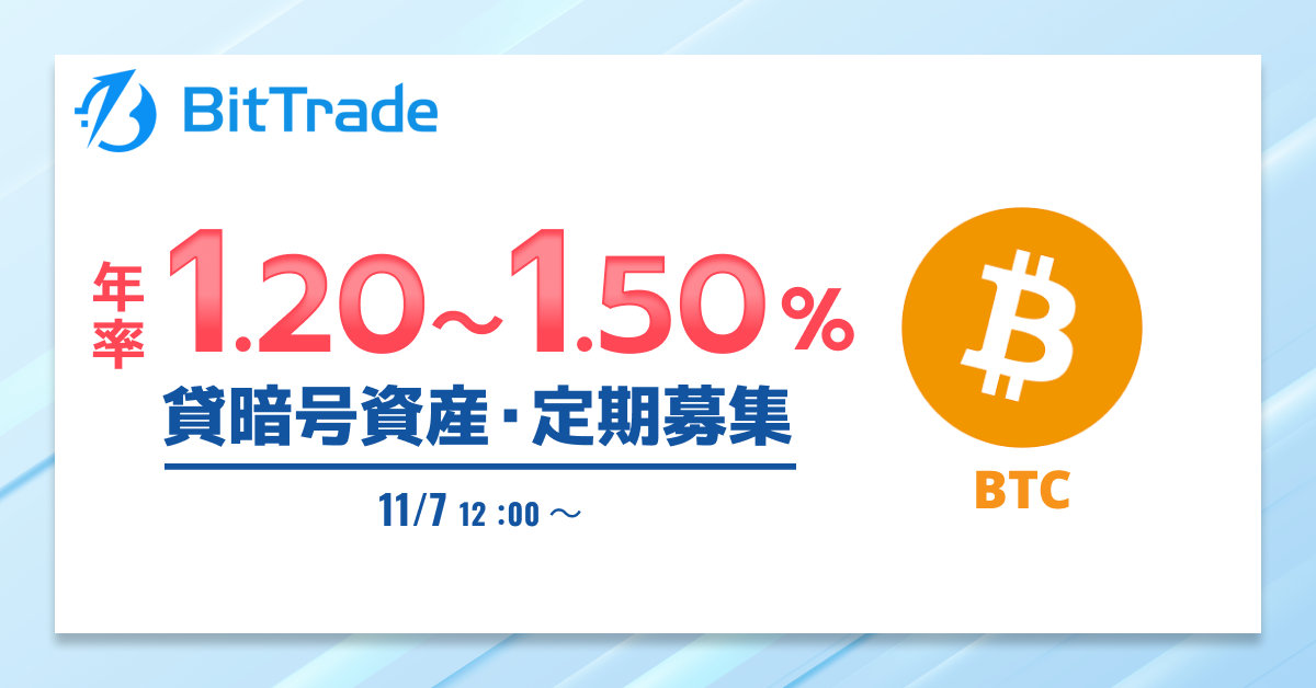 ビットトレード:ビットコイン(BTC)貸暗号資産定期募集開始のお知らせ