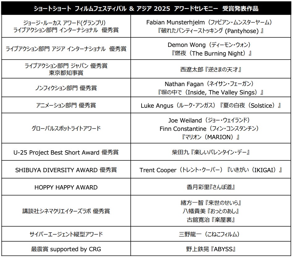 ショートショート フィルムフェスティバル & アジア 2025 アワードセレモニー