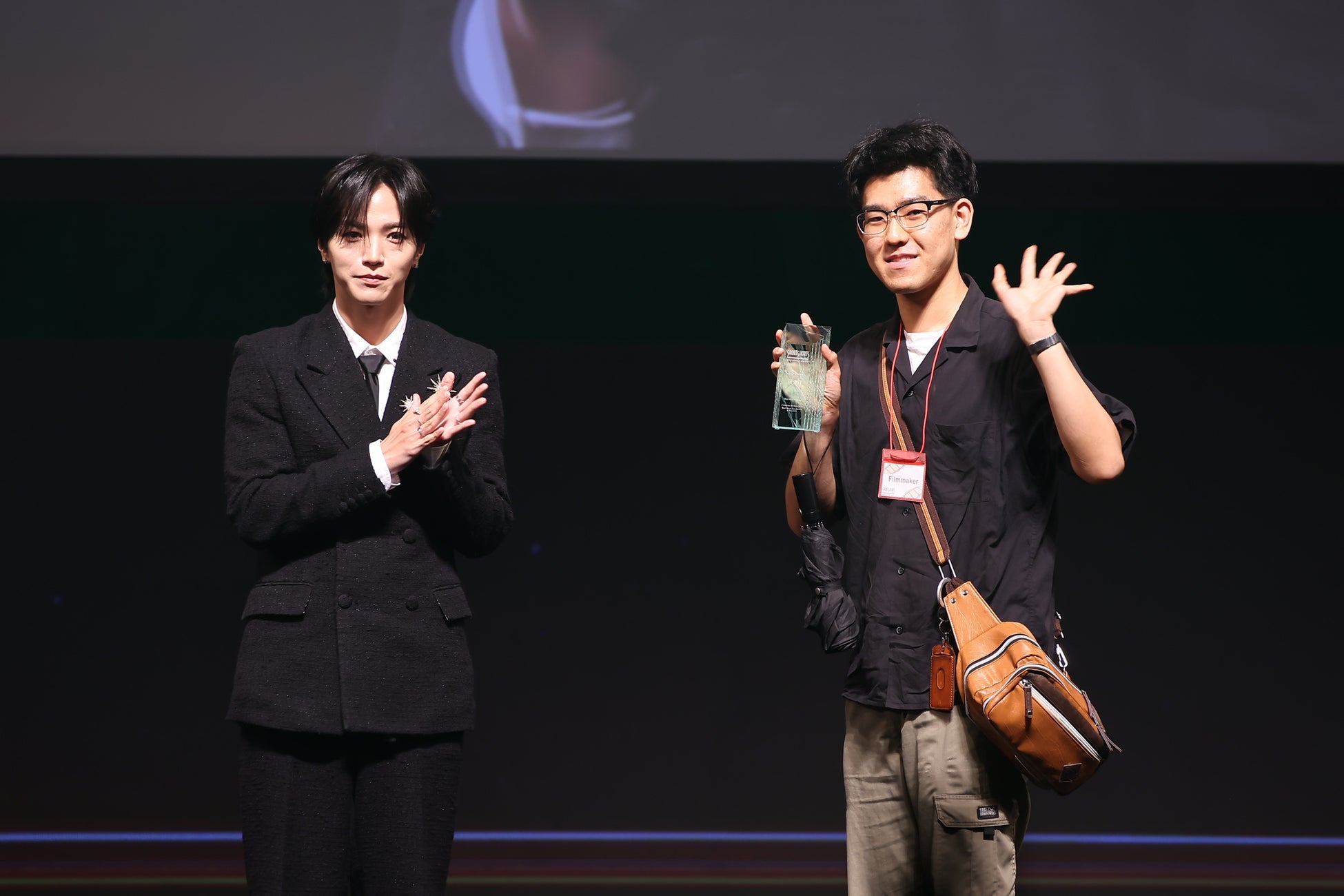 25歳以下の若手映像作家を対象とし、個性が光る瑞々しい作品たちの中から最も優れた作品が優秀賞に選ばれるこの部門では、20歳 の柴田九監督『楽しいバレンタイン・デー』が選ばれました。プレゼンターには、JO1大平祥生さんが登壇。監督に対して大平さんは、「監督お めでとうございます!場慣れすごいですね(笑)」と驚きと祝福の言葉を贈りつつ、「カメラワークや画角、楽曲など、若い世代ならではの感性が光っていました。ストーリーも感動しました!」と作品を絶賛。さらに、「僕自身も10代の頃から夢を追いかけてきました。大変なこともあったけれど、それが今の糧になっている。だからこそ、夢を持つ人にはそのまま突き進んでほしいし、まだ踏み出せていない人も、一歩を踏み出してみて ほしい」とエールを送りました。