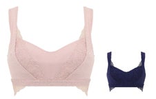 肌ざわりの良い綿混リブ素材を使用し、胸元とアンダー部分にレースをあしらったフェミニンなデザインです。カップサイドにパワーネット素材を裏打ちしており、カップにも伸びの少ない素材を採用することで横になった時のバストの脇流れを押さえます。