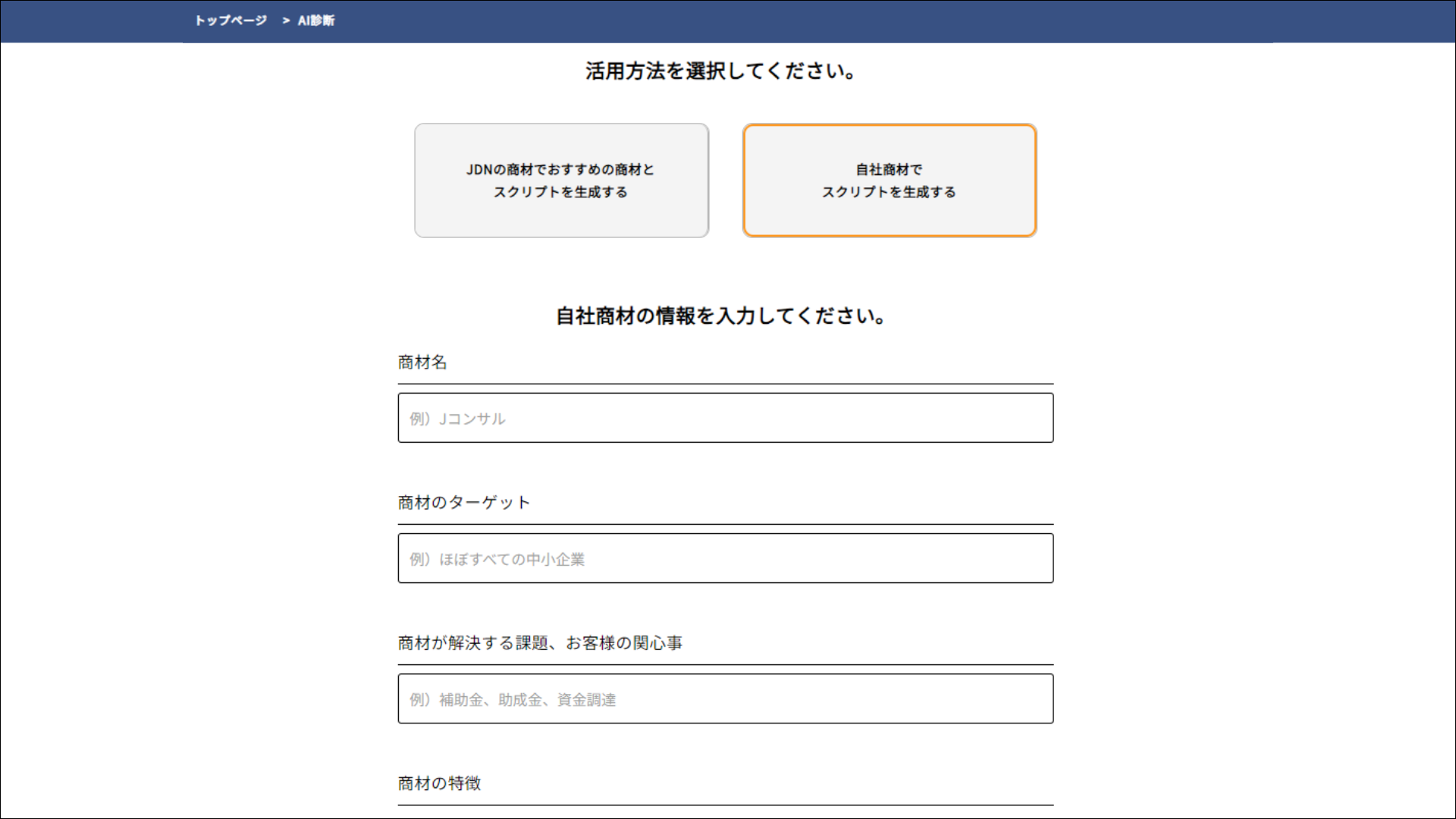 提案したい企業の情報、自社商材の情報を入力することで、AIがその提案先に適した営業フォーム・メール文面、営業時のトークスクリプトを自動生成いたします。