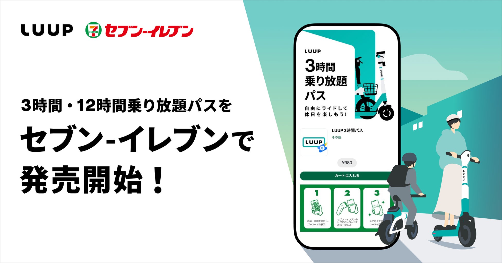 株式会社Luup(本社:東京都千代田区、代表取締役社長兼CEO:岡井大輝、以下「Luup」)は、電動キックボードや電動アシスト自転車など「電動マイクロモビリティ」のシェアリングサービス「LUUP(ループ)」の3時間・12時間乗り放題パス(※)が、セブン-イレブンのスマホプリペイドから2024年8月5日(月) 00:00〜2025年7月31日(木)の期間限定で購入可能となることをお知らせします。