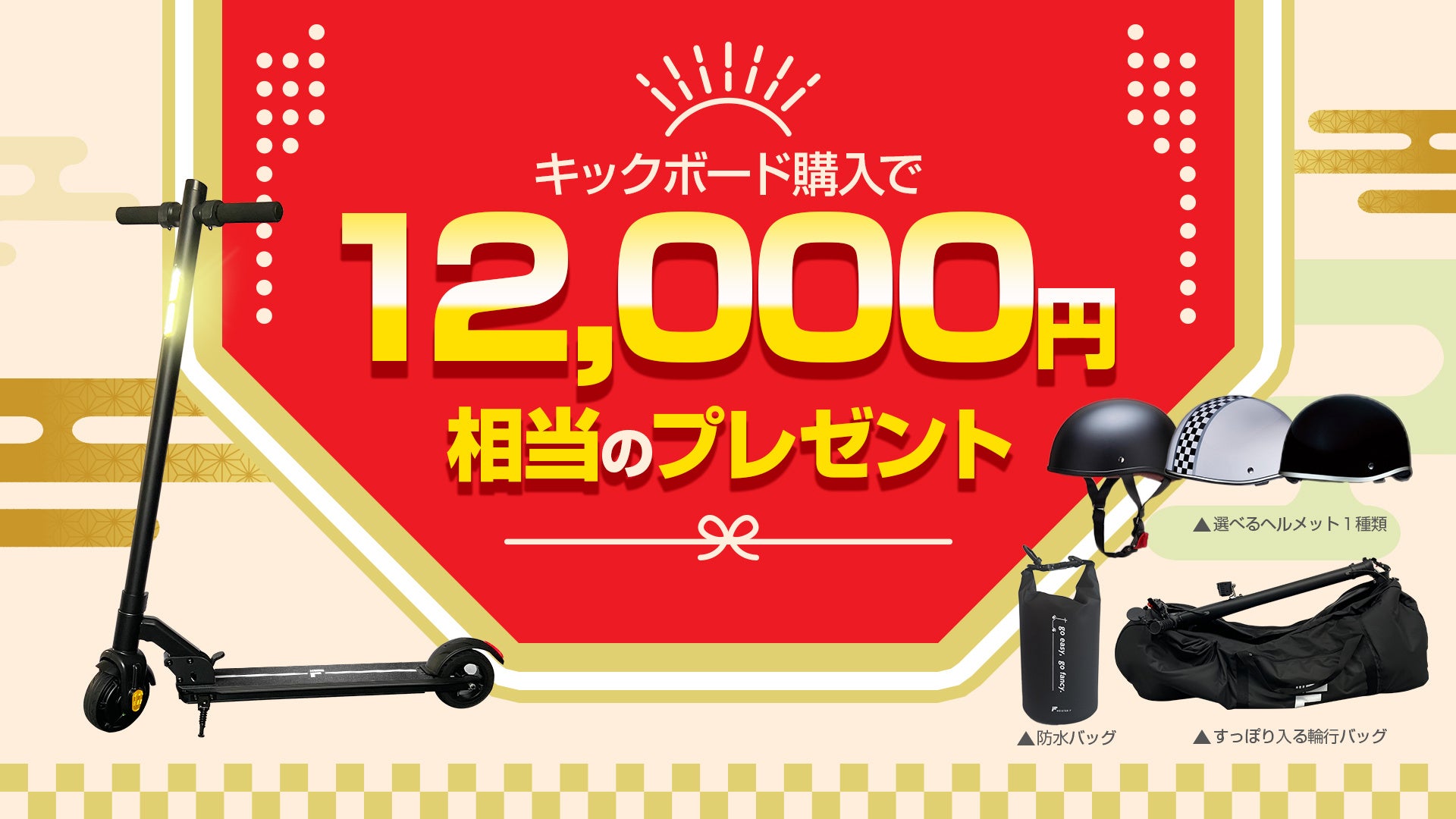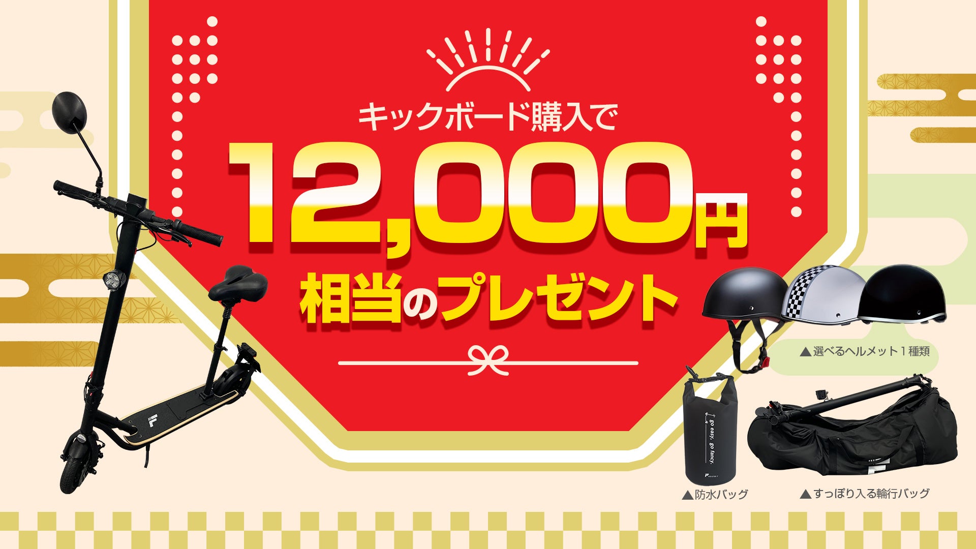 12,000円相当のプレゼント!楽天市場「Show !t」電動キックボード購入でヘルメット・輪行バックセットがもらえるキャンペーンを実施。12月19日開始、ポイント10倍プレゼント楽天大感謝祭に参加!