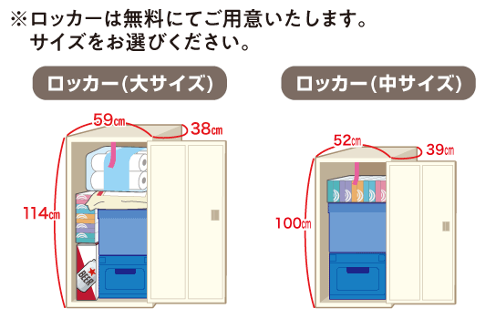 ※戸建の方で、敷地内に商品を保管する鍵付きロッカー(無料)を設置していただくと、月会費がお得になります。 鍵付きロッカーの大きさは以下の2種類からお選びいただけます。