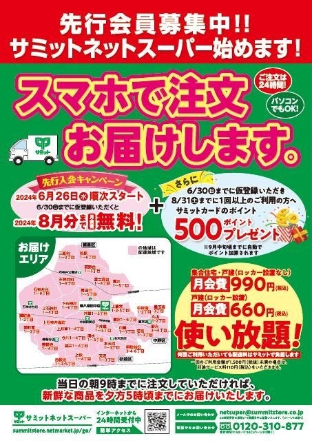 サミットストア環八南田中店は、2024年6月26日(水)より、「サミットネットスーパー」を開始します。