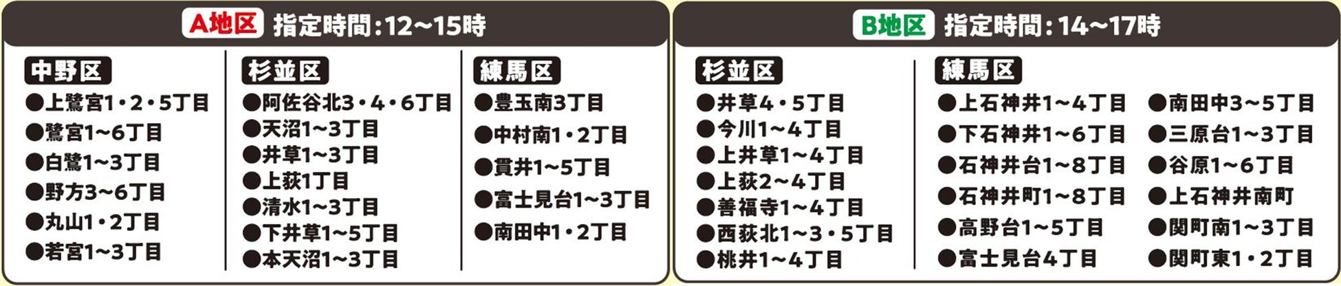 お届けエリア(練馬区、杉並区、中野区の以下の地域)