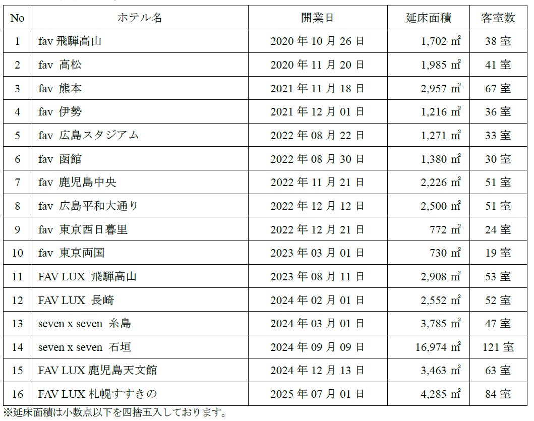 当社は、観光立国の実現や地域創生への貢献を目的にホテルの開発に取り組んでおり、多人数向けホテルブランド『fav』『FAV LUX』『edit x seven』『seven x seven』およびカルチャービジネスホテル『BASE LAYER HOTEL』を全国で展開しております。このたび、当社グループの多人数ホテルブランドの開発用地(借地権付)を新たに販売用不動産として取得いたしました。