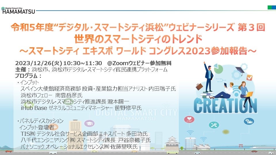 令和 5 年度“デジタル・スマートシティ浜松”ウェビナーシリーズ第 3 回を開催! 世界のスマートシティのトレンド ~スマートシティ エキスポ ワールド コングレス 2023 参加報告~