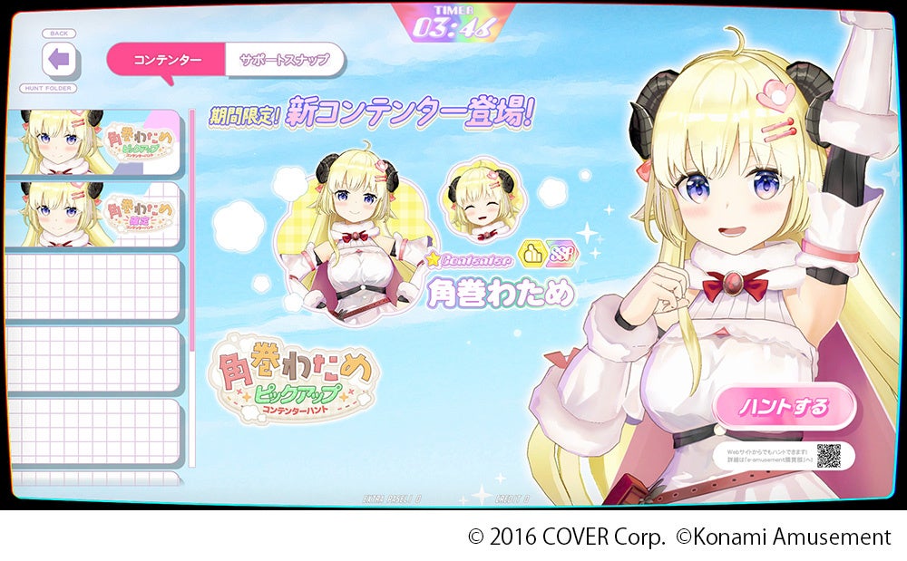 楽曲プレーを重ねるとレベルが上がり、プレーを有利に進めやすくなったり、楽曲をクリアしやすくなったりする「コンテンター」と「サポートスナップ」に『角巻わため』が登場します!