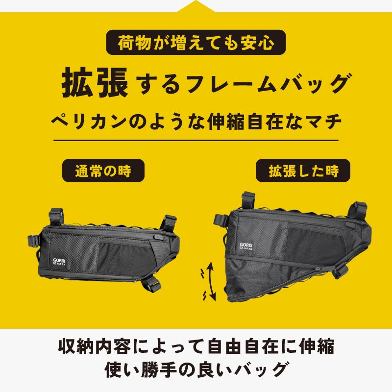 【新商品】【拡張するフレームバッグ!!】自転車パーツブランド「GORIX」から、フレームバッグ(GX-FB PELICAN)が新発売!!