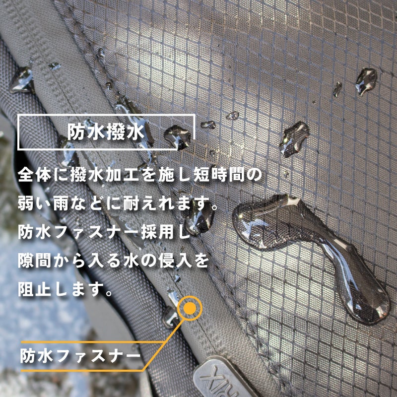 防水ファスナー採用し隙間から入る水の侵入を阻止します。