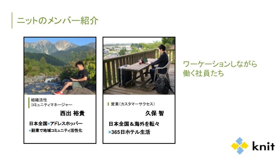 ◆当社社員でワーケーションをしながら働く社員を紹介しました。アドレスホッパー(住所を持たず生活する)として日本全国、海外を回りながら仕事をしています。普段と違う環境で仕事することで、新しいアイディアが出てくることが期待されます。