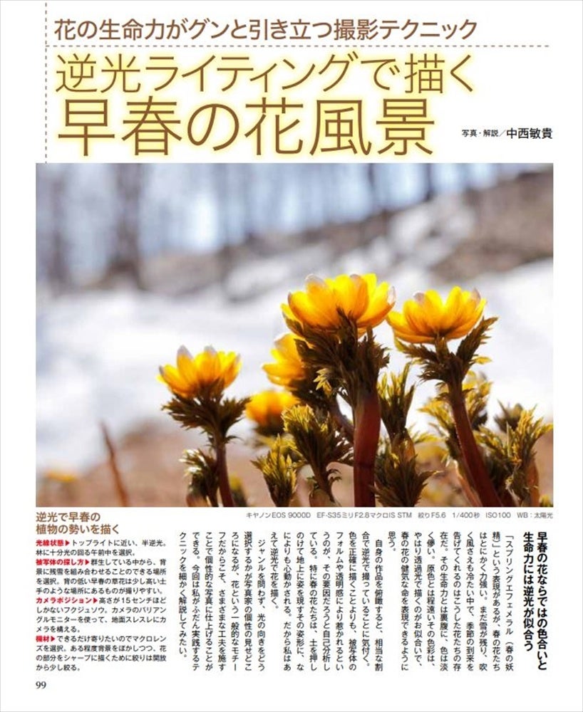 ここでは広大なランドスケープからマクロの視点まで、独自の感性で風景を切り取る写真家・中西敏貴さんに、早春の花の撮り方を解説してもらいます。